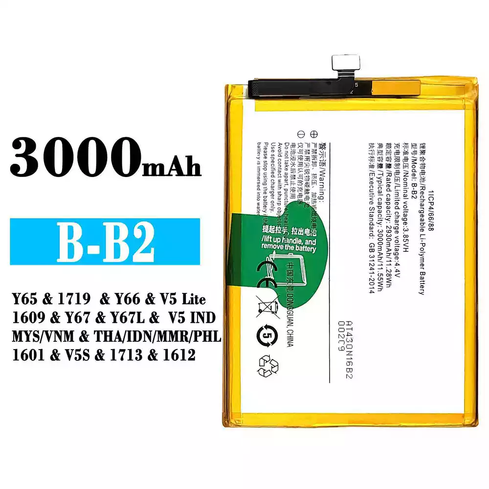 Battery B-B2 for VIVO Y65 / 1719 / Y66 / V5 Lite / 1609 / Y67 / Y67L / V5 IND MYS VNM / THA IDN MMR PHL 1601 / V5S / 1713 / 1612