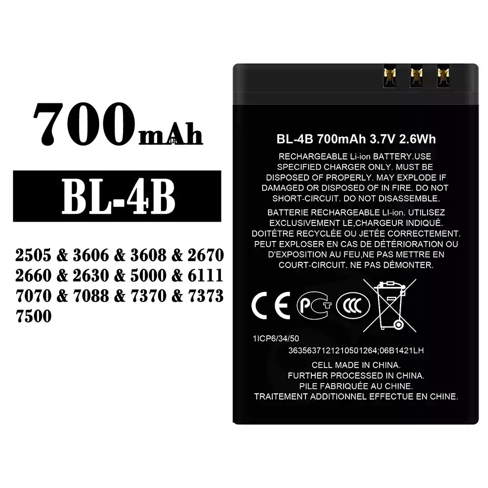 Battery BL-4B for Nokia 2505 / 3606 / 3608 / 2670 / 2660 / 2630 / 5000 / 6111 / 7070 / 7088 / 7370 / 7373 / 7500