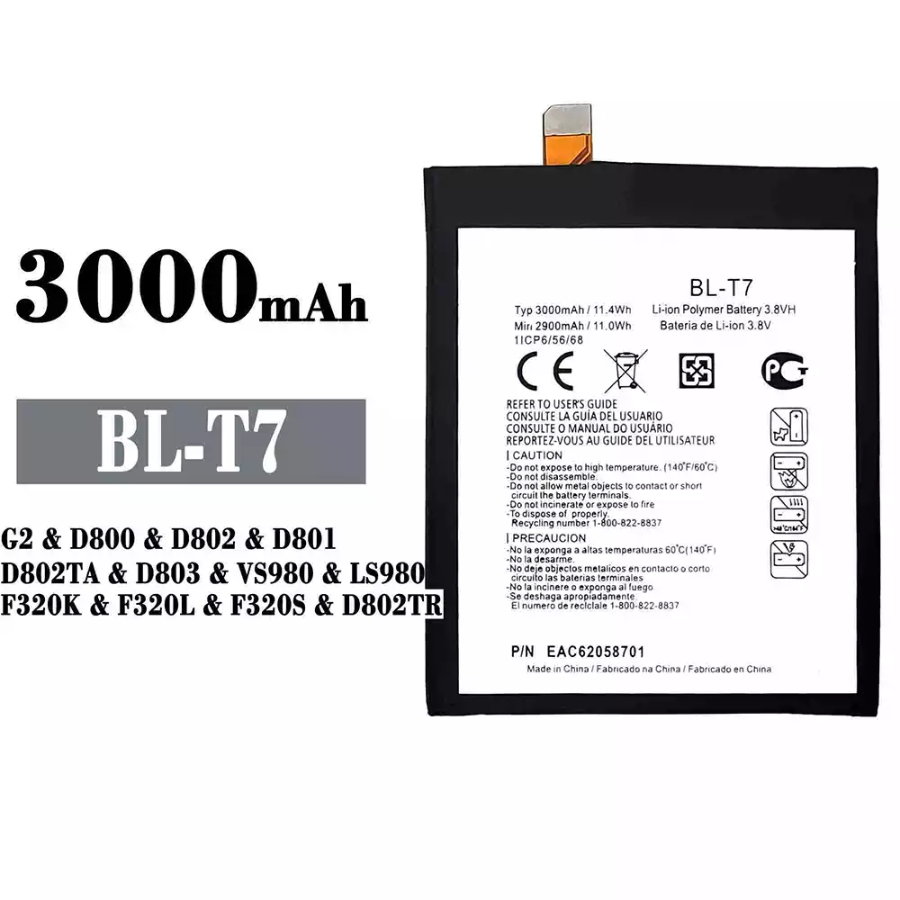 Battery BL-T7 for LG G2 / D800 / D802 / D801 / D802TA / D803 / VS980 / LS980 / F320K / F320L / F320S / D802TR