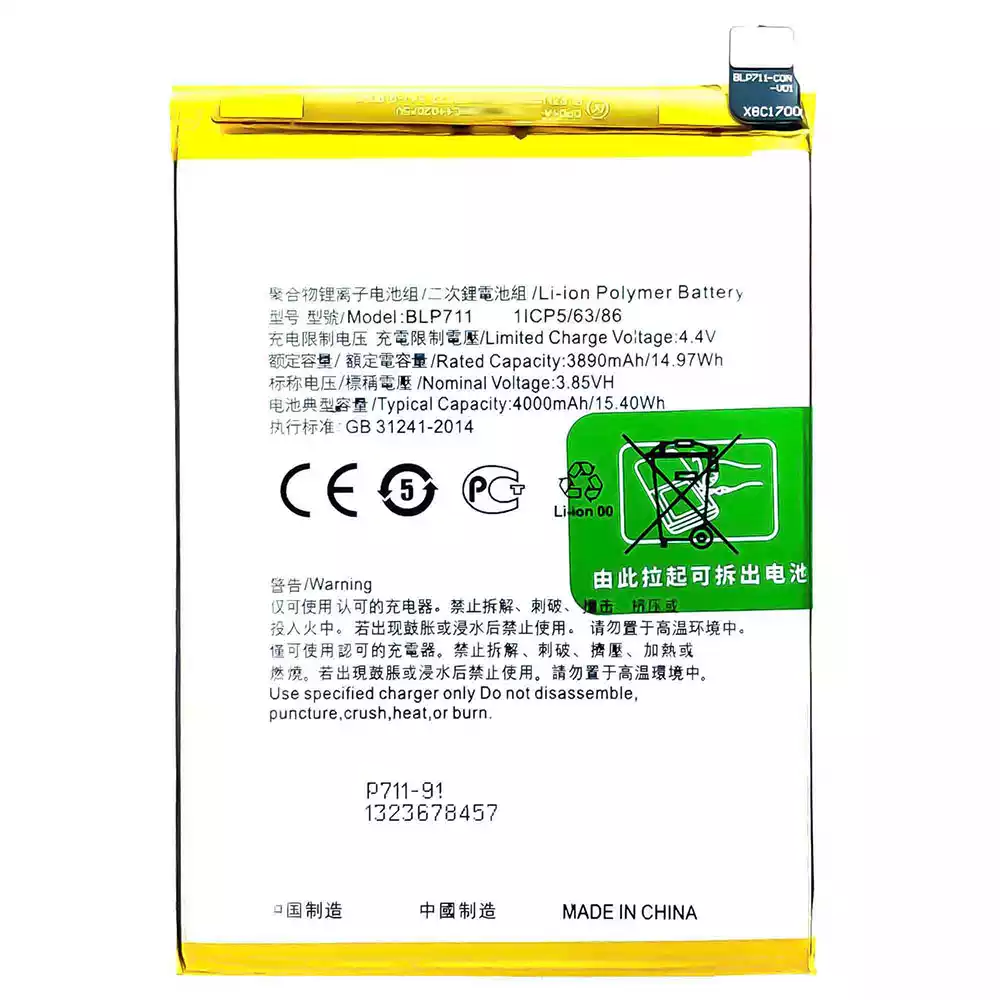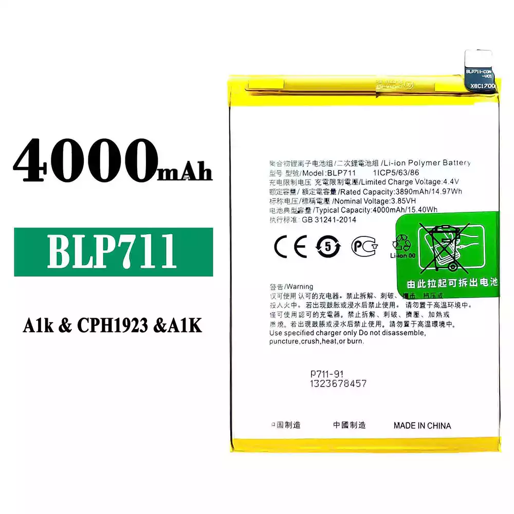 Replacement battery BLP711 for OPPO A1K