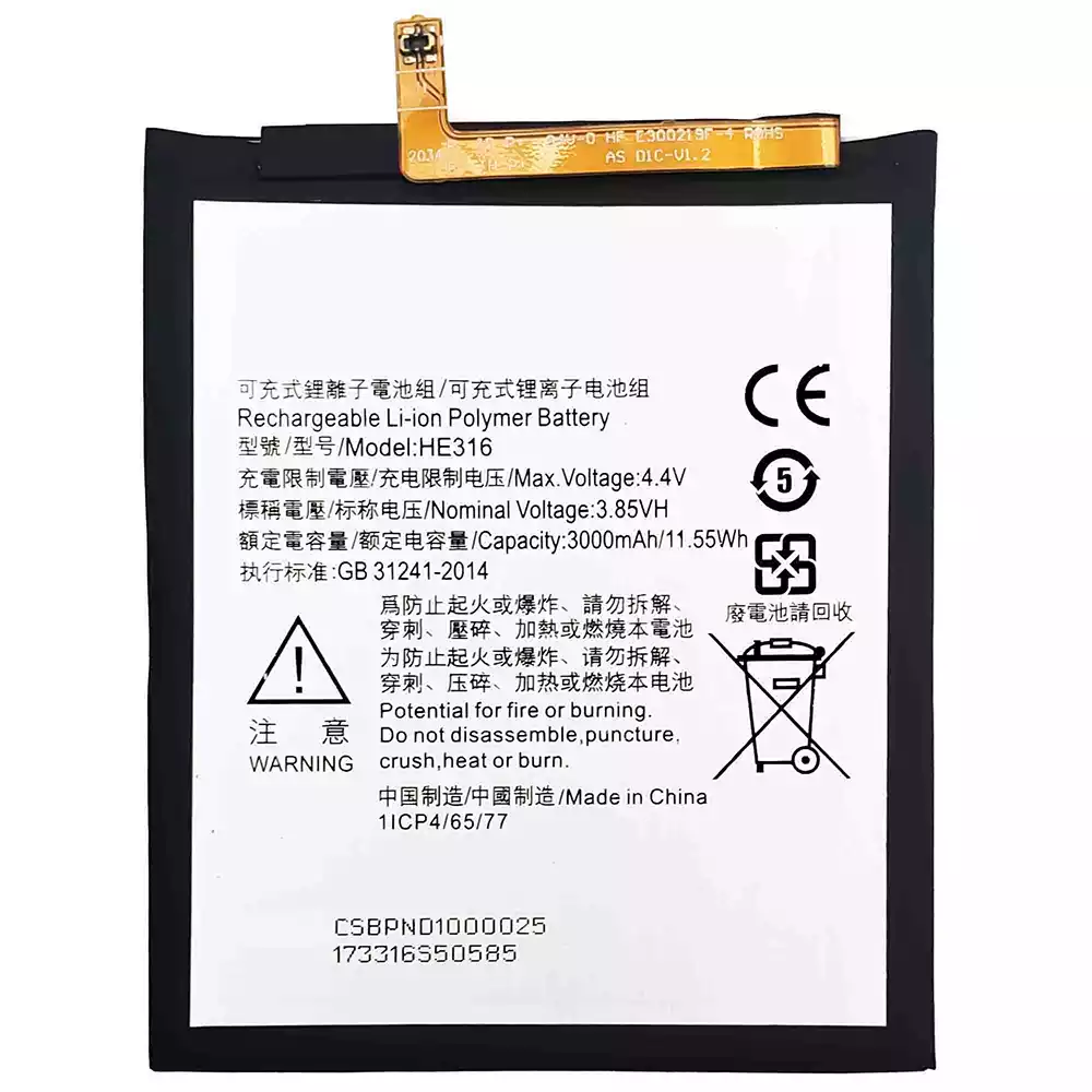 Battery HE316 for Nokia 6 /TA-1021/TA-1033/TA-1000/TA-1003/TA-1025/TA-1039